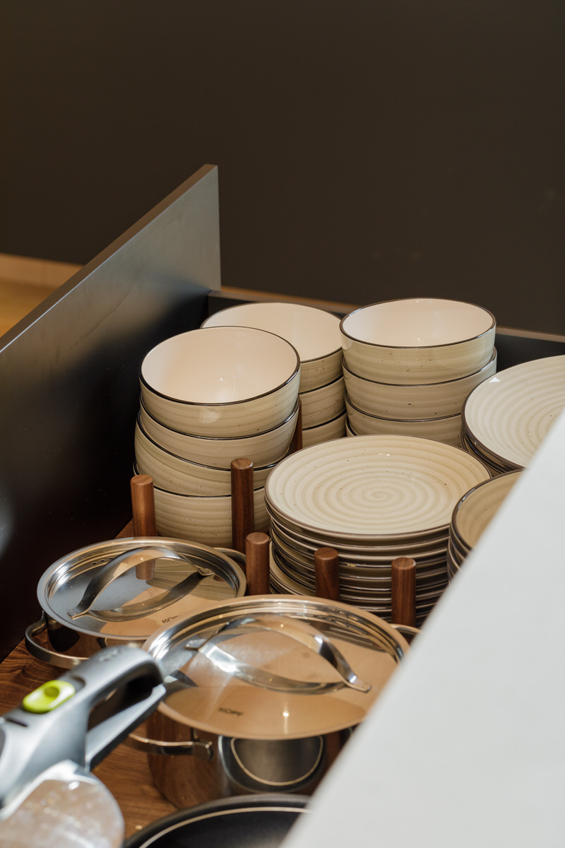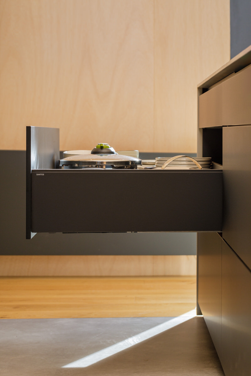El resultado es fiel a las proporciones reales del espacio, exacto en la tonalidad de la madera y sin ningún tono anaranjado en los elementos negros. Por defecto, las zonas blancas o negras son las que se ven más fácilmente afectadas por las dominantes de color que rebotan con la luz natural, pero no es el caso gracias al uso correcto de la luz artificial que se empleó para contrarrestarlo.