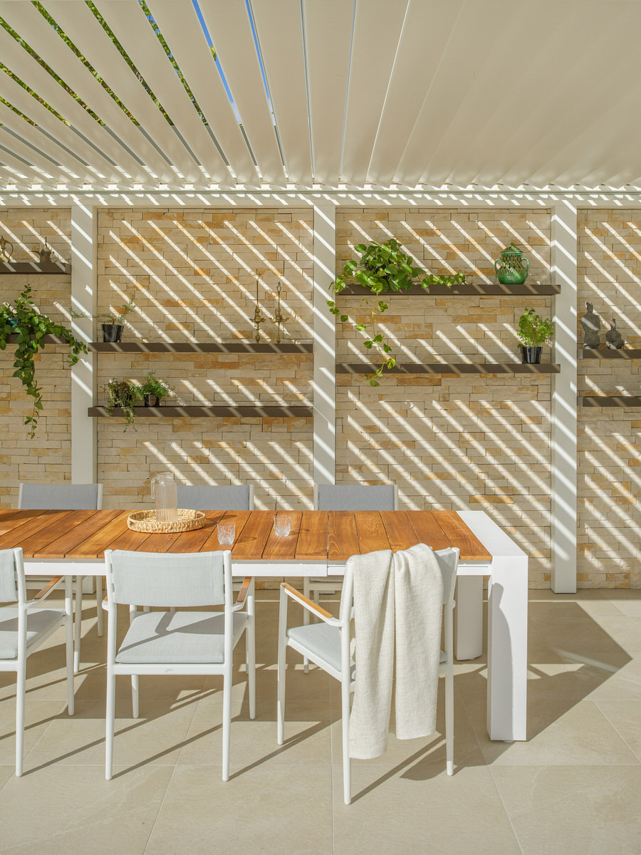 Se optó por abrir el comedor, la cocina y la sala de estar hacia el exterior, donde también se realizaron renovaciones en la nueva zona ajardinada, la piscina y la pérgola que actúa como terraza de verano.