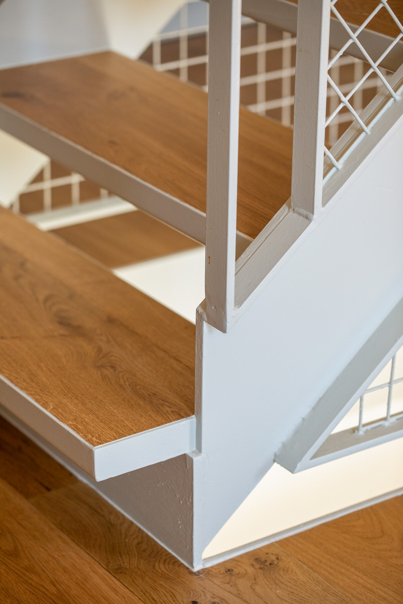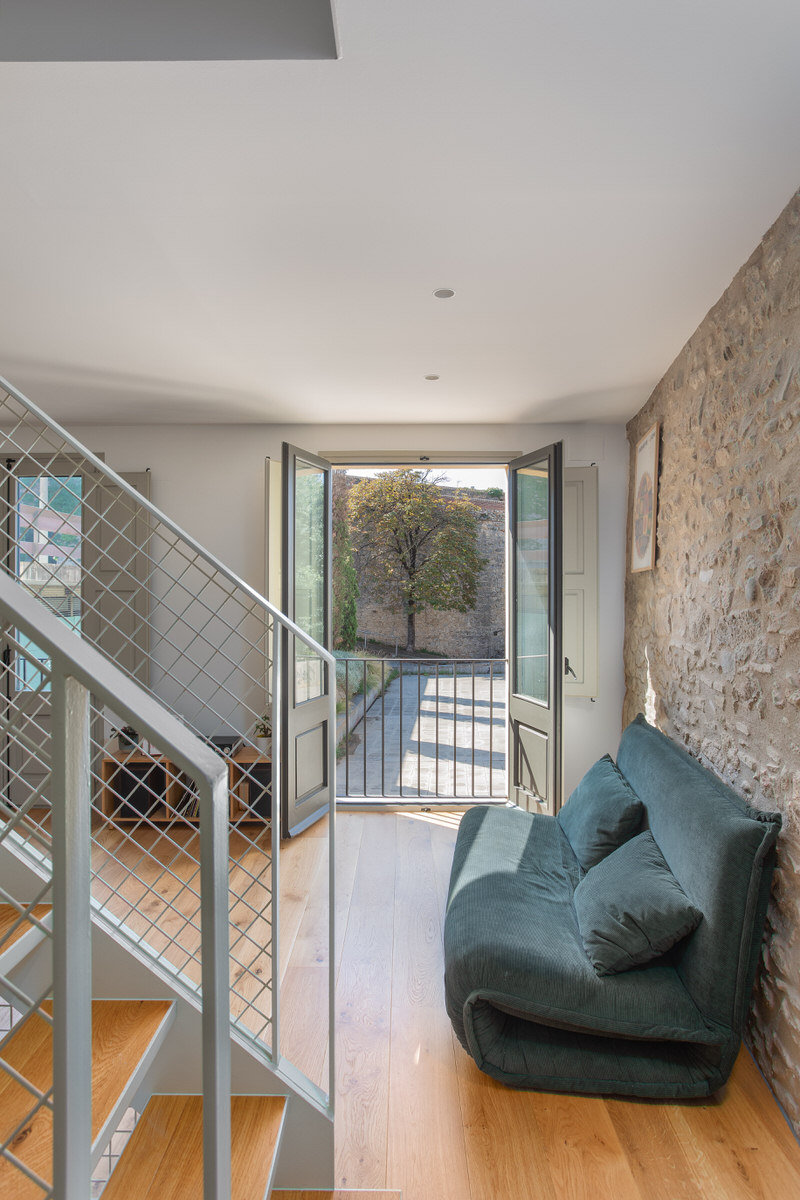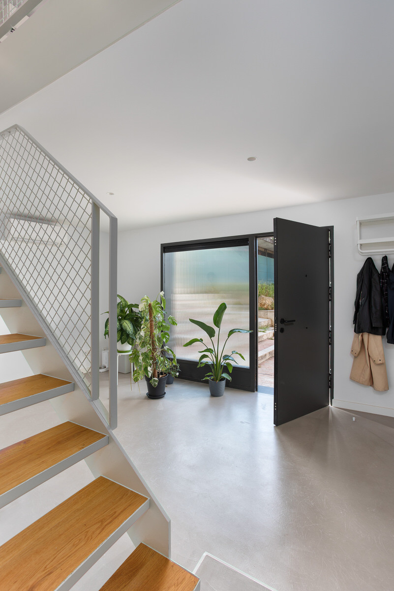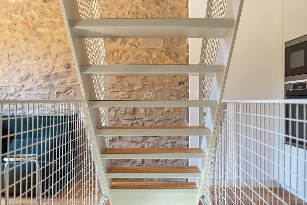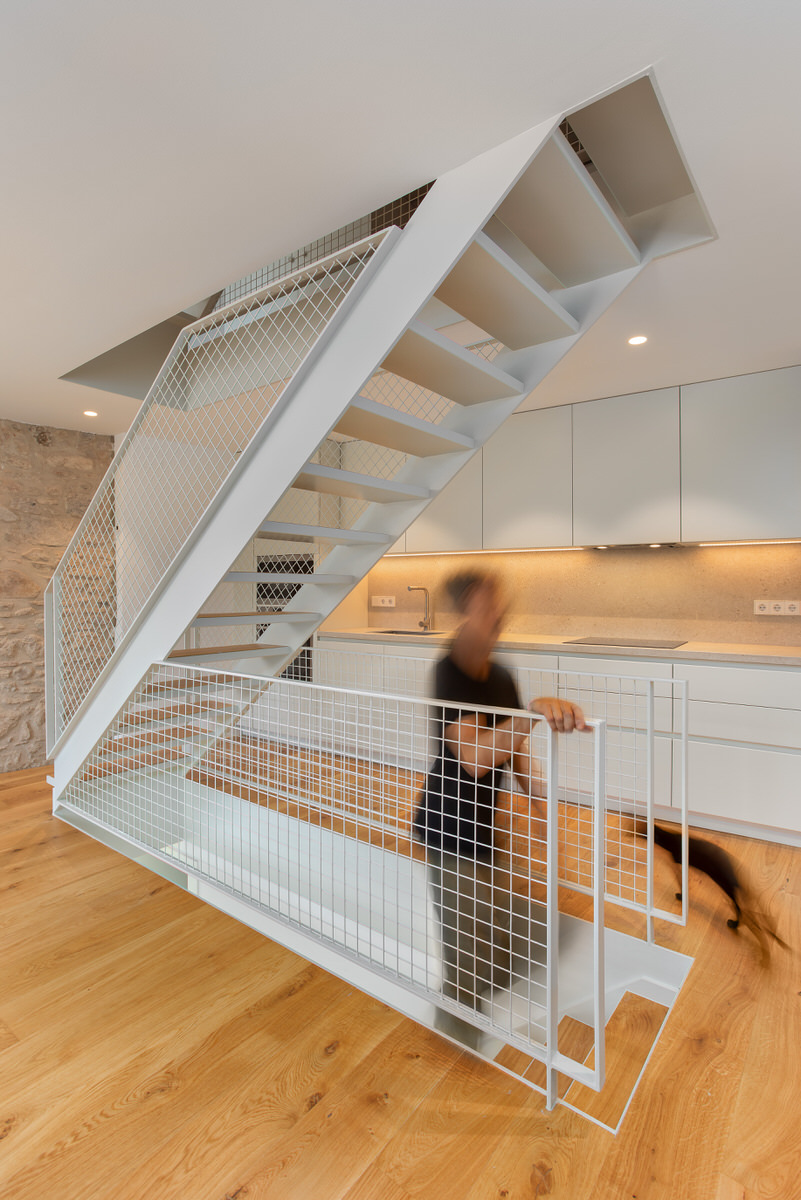 Casa Estreta es una vivienda entre medianeras que está vertebrada por la escalera central, y que conecta la planta inferior con la superior pasando por el centro de cada planta. No es una elección tomada a la ligera. Realmente esta configuración era la más óptima para sectorizar las zonas de la vivienda y no desaprovechar el espacio disponible. Por lo tanto, a la hora de realizar la producción del reportaje era inevitable destacar la escalera y sus elementos.