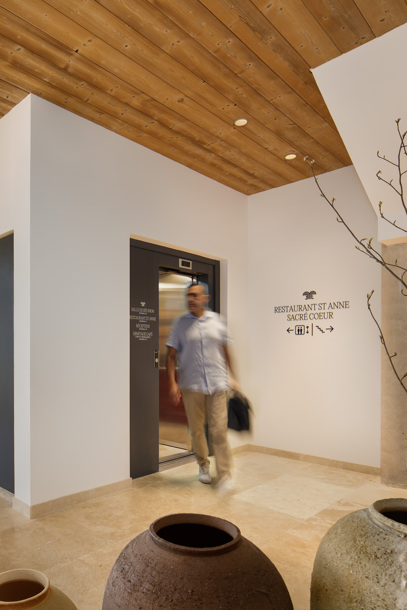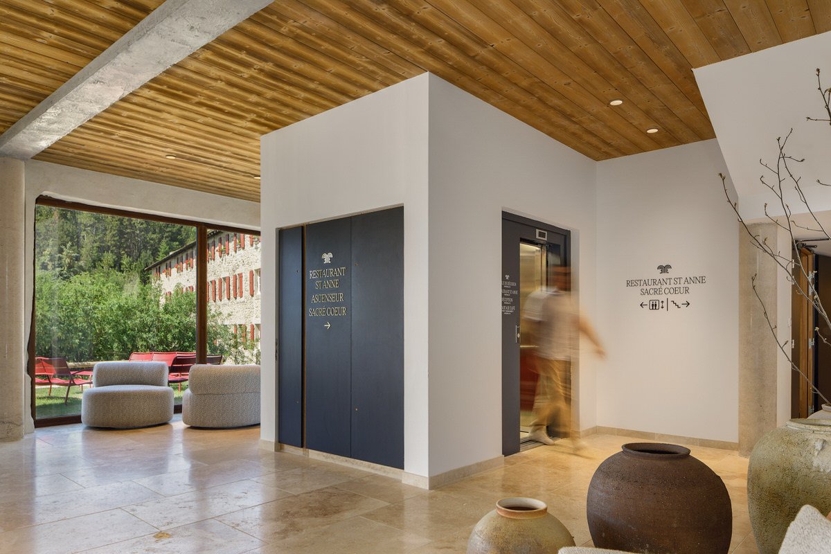 Más allá de enmarcar el edificio en el entorno natural de la zona y de presentar los exteriores, la idea era captar y mostrar los nuevos accesos del establecimiento. La reforma presenta un hall cuidado, pensado con materiales rústicos y modernos que se integran perfectamente en el amplio espacio.