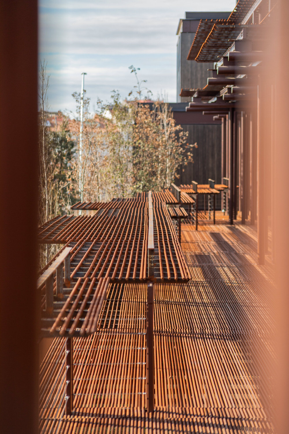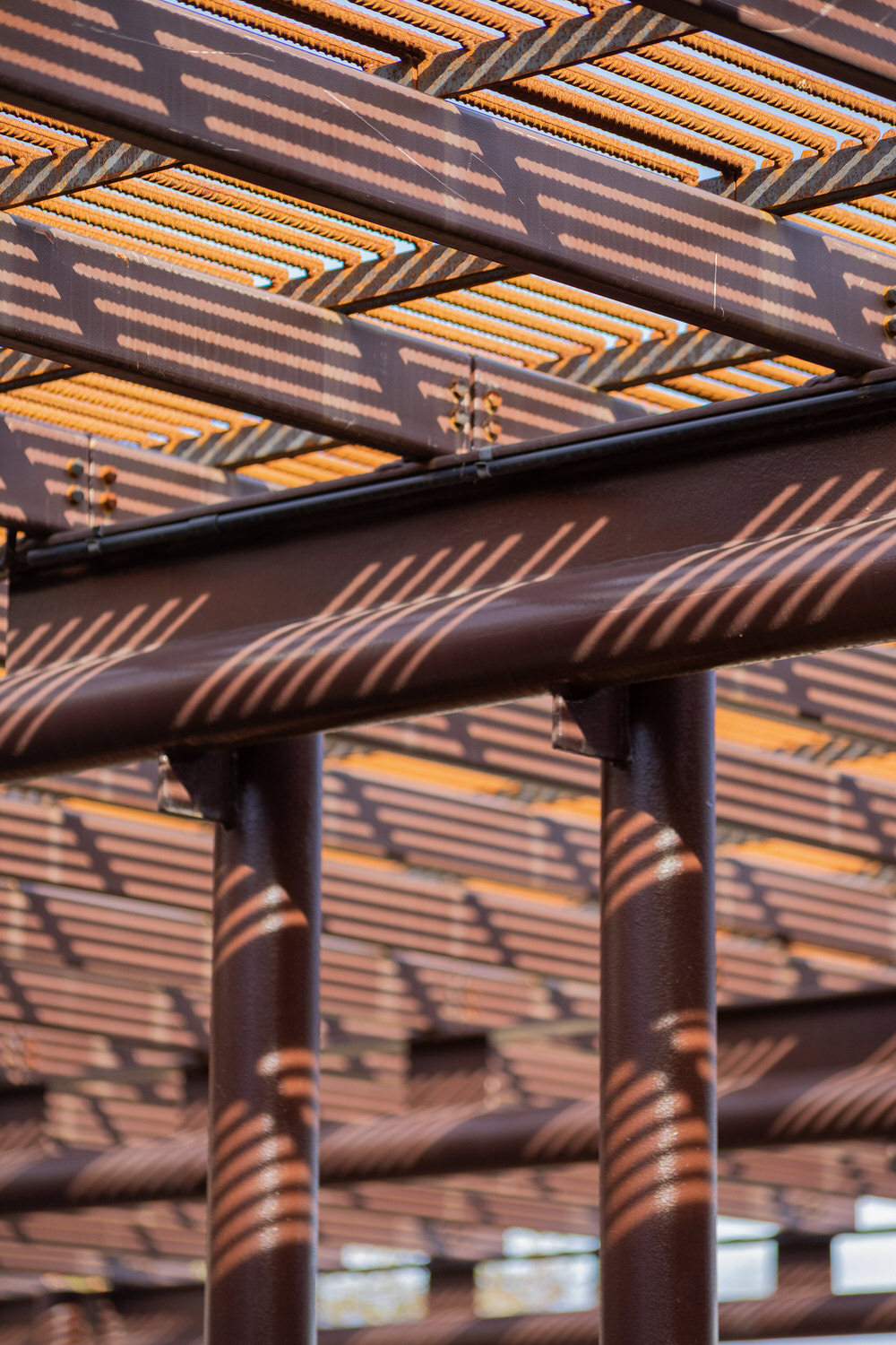 Cercle Gespromat coordinó y ejecutó la obra, por lo que busqué la interacción de los arboles con el hierro, las texturas naturales y de oxido para interconectar el reportaje. Empezando por el plano general y pasando al plano detalle. Dejando margen para que la fachada de 150 metros y su irregularidad estuviera cubierta de principio a fin.