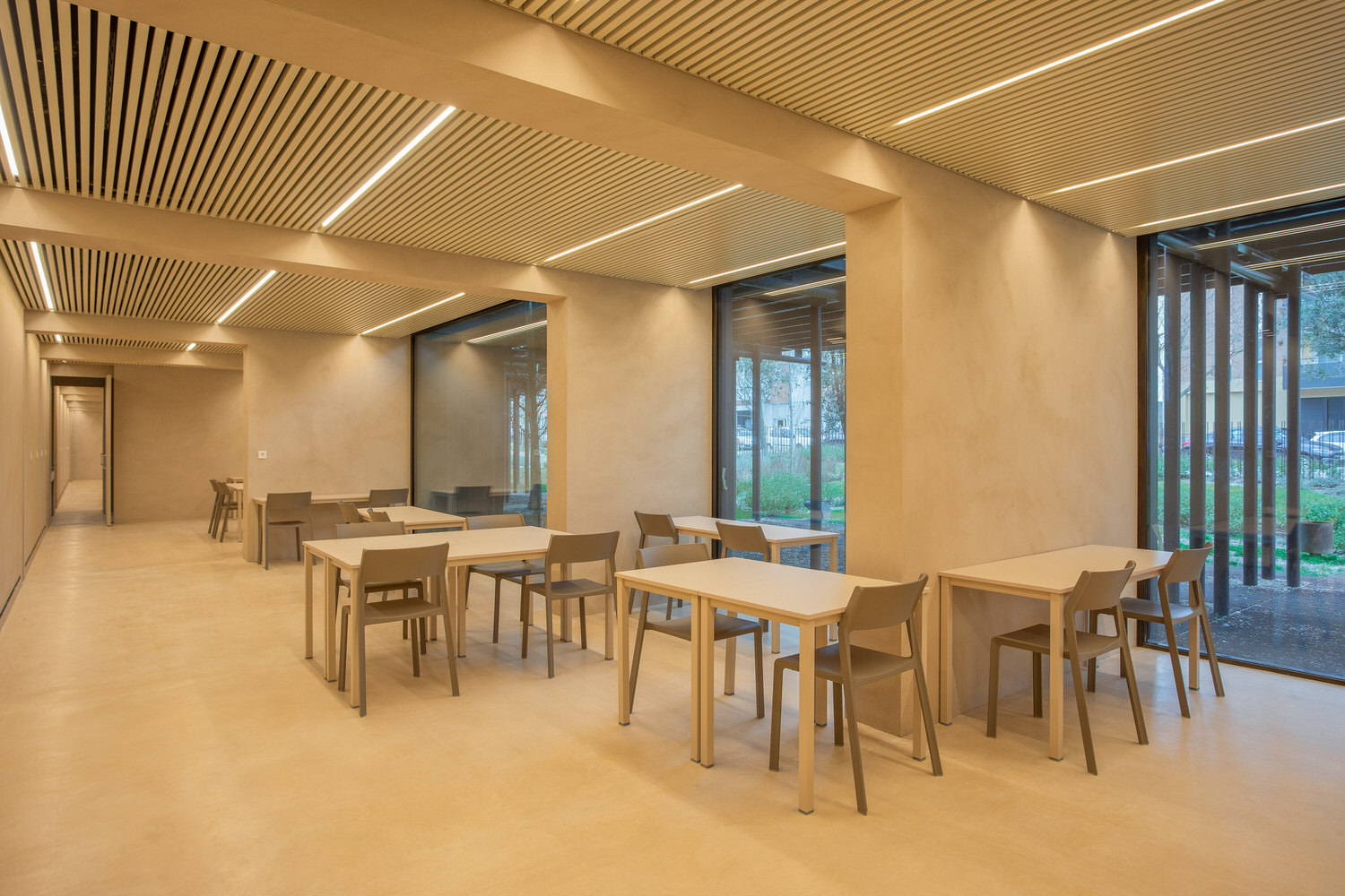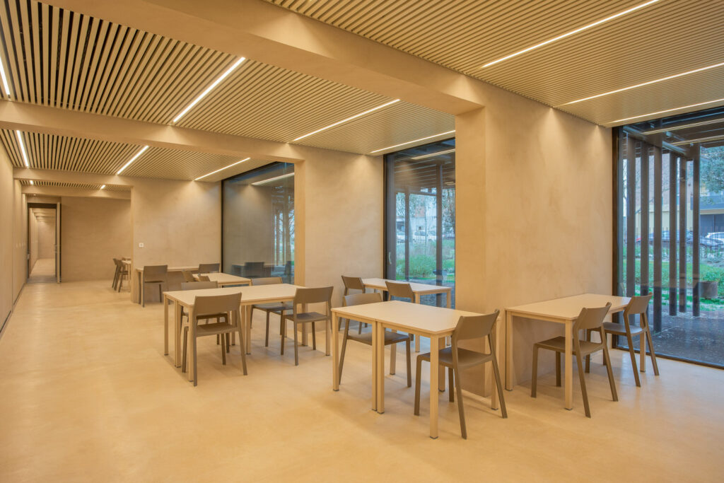 El conjunto alberga una gran parte residencial, atención diurna para usuarios, plazas de trabajo permanentes, además de contar con formación sanitaria y hotelera (adaptable y ampliable según las necesidades). Junto a un restaurante con una propuesta de cocina de territorio que ha sido diseñado y decorado por Sandra Tarruella Interioristas