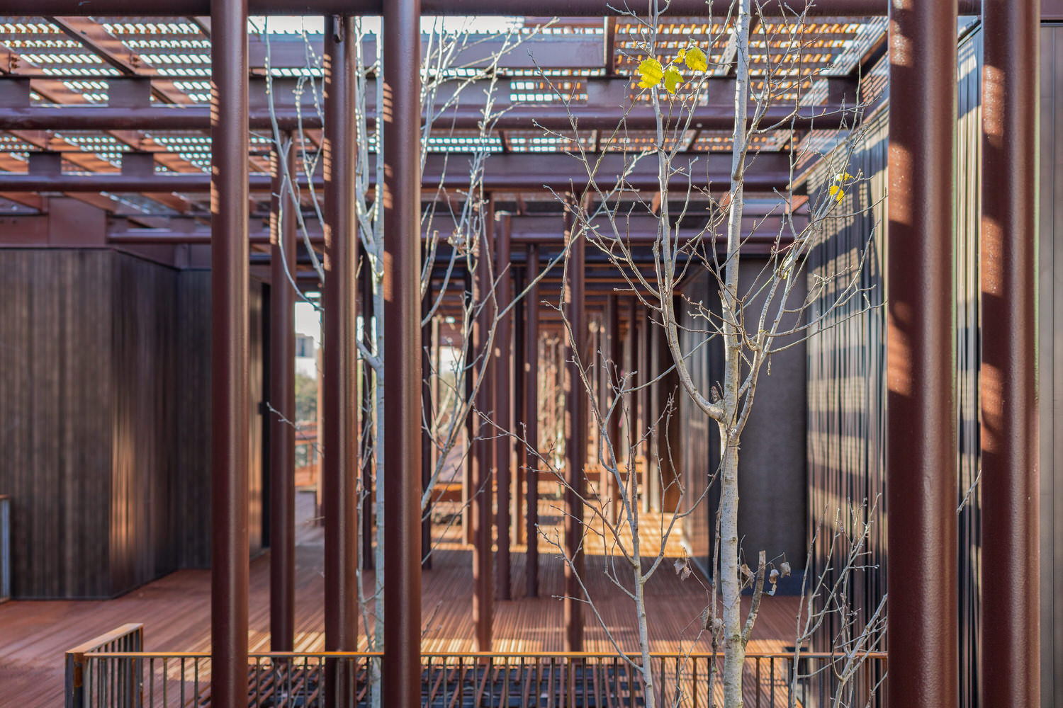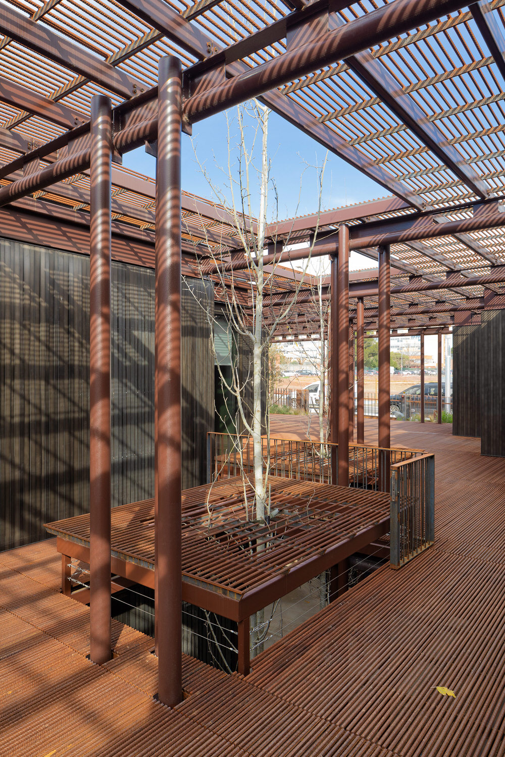 A futuro, una vez los arboles estén crecidos, la visión de RCR Arquitectos se cumplirá cuando el proyecto alcance todo su carácter. Donde se mezclaran las columnas, el hierro corroído, las lineas rectas pero irregulares y las formas orgánicas de los troncos y la vegetación.