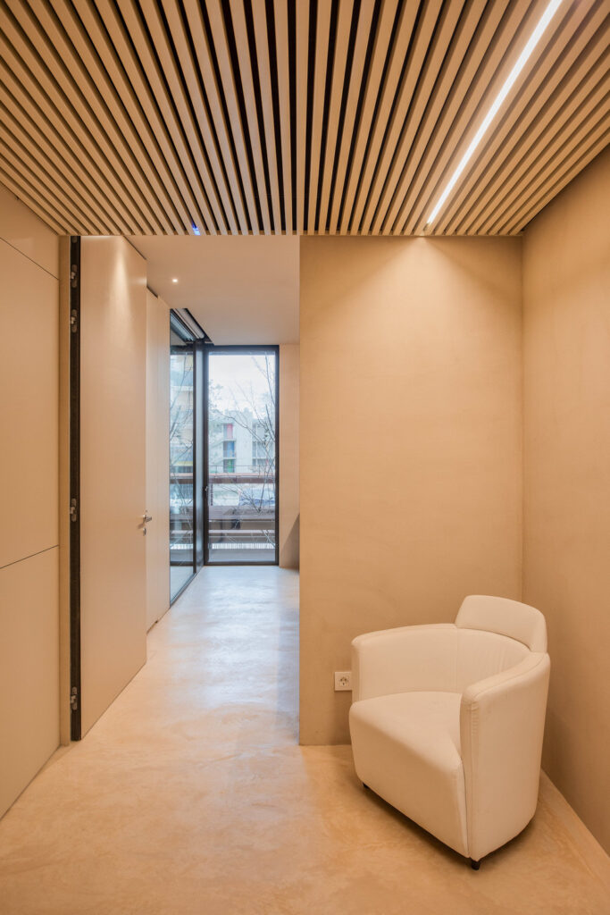 A nivel fotográfico planteé trabajar el encargo solo con luz natural. Hecho que a su vez fue un reto por la meteorología del día. La fachada principal del proyecto, con sus volúmenes y sus luces y sus sombras, fue mi obsesión. Estar allí todo el día me permitió circular por el sitio en distintas ocasiones cambiando de ópticas para ver encuadres nuevos en cada paseo.