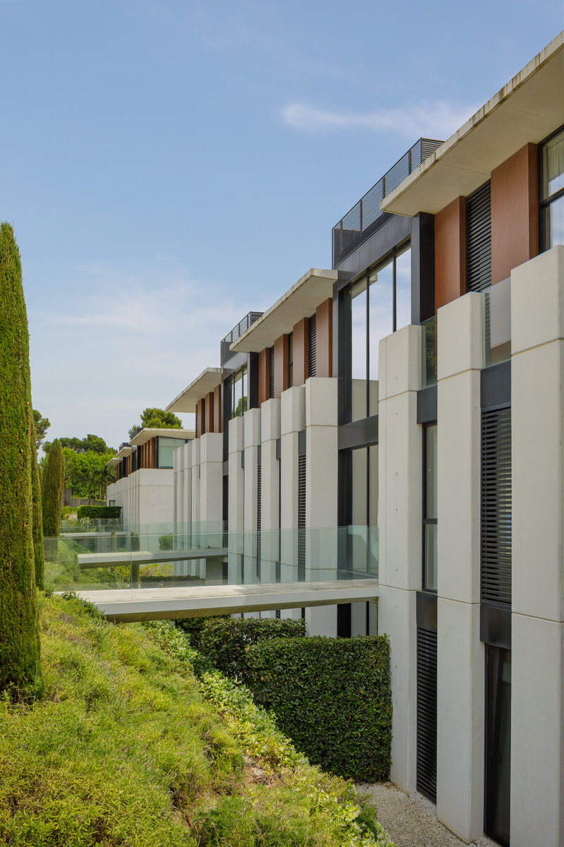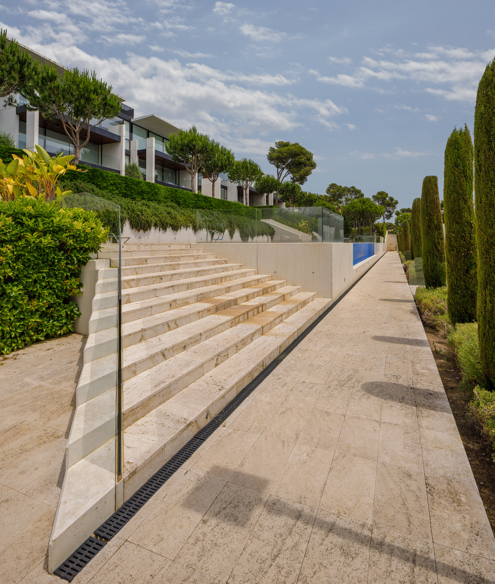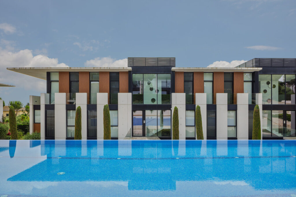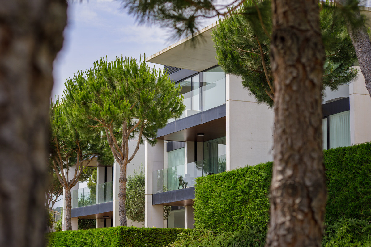 Reportaje de los exteriores de una promoción residencial en Politur 02 con zona de piscina comunitaria en la Costa Brava. Todas las imágenes se captaron utilizando apoyo de luz artificial para reforzar la estética limpia, nítida y vibrante que el cliente buscaba.